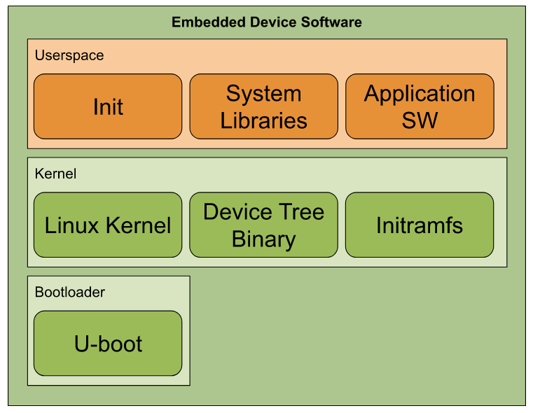 The bootloader handles initializing the hardware at boot and preparing the system to handoff execution to the kernel. For this article, we’re going to focus primarily on u-boot when discussing bootloaders, but these fundamentals often transfer to other common bootloaders.