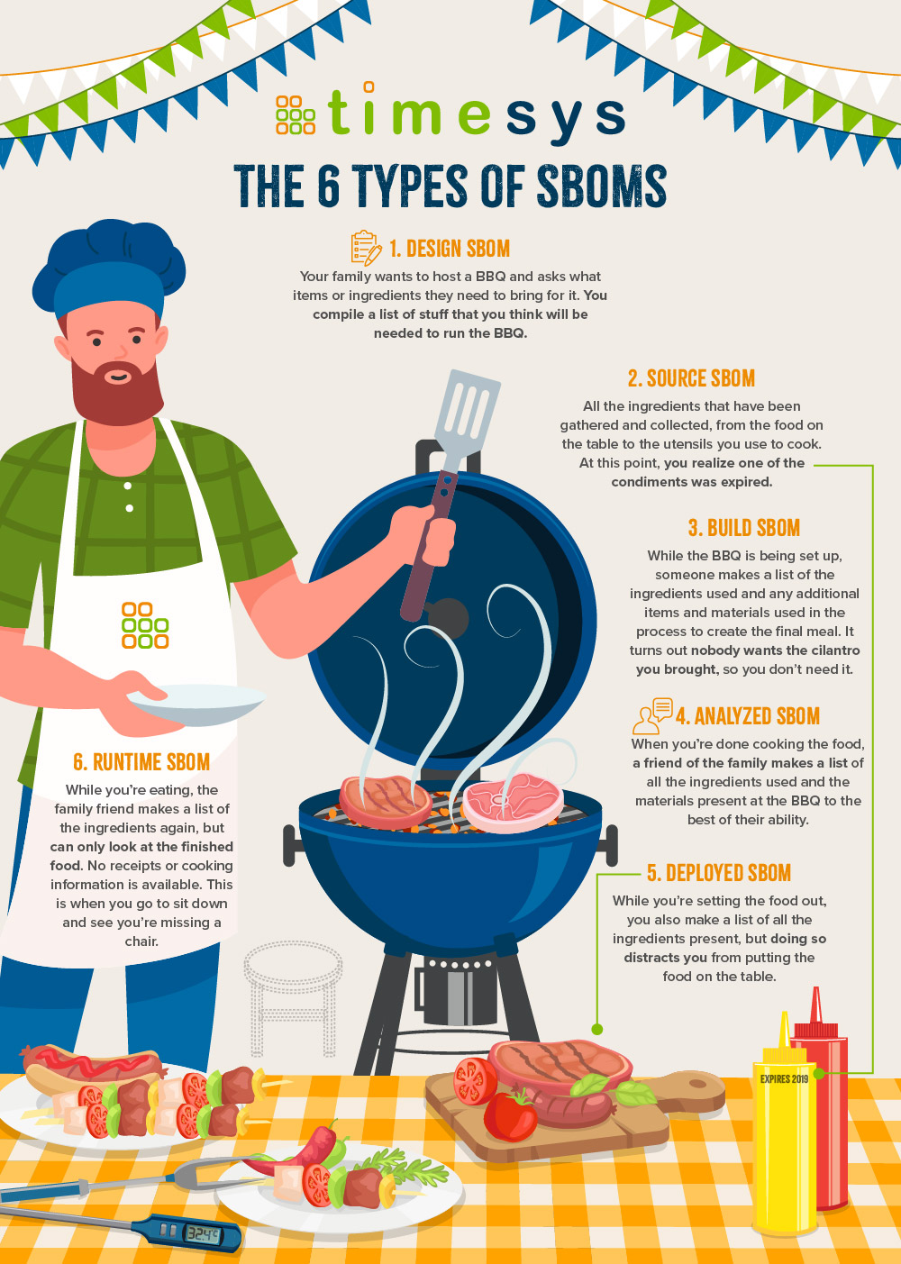 While it may seem like a good idea to be able to create every type of SBOM, you should examine what your specific requirements are to ensure you are getting what you need. Each SBOM type comes up at a different stage of the development and maintenance process, and provides different amounts of information and, as we can see with barbequing, different challenges.