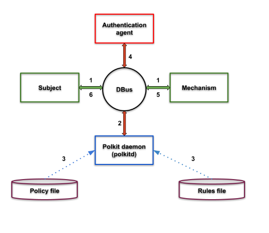 - Polkitd then tells the mechanism whether or not authorization was granted.